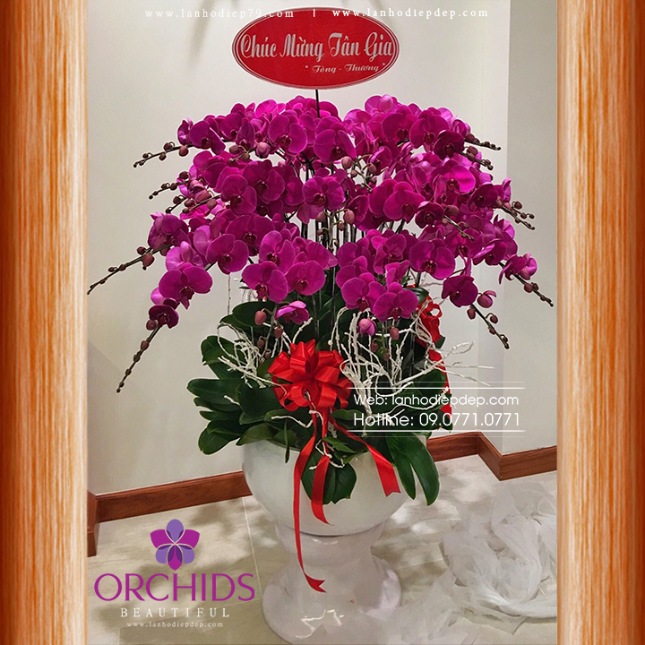 (Chậu lan hồ điệp 30 cành hoa màu tím sang trọng, hoa được thiết kế về 1 mặt tạo cảm giác đầy đặn cho người nhìn, kết hợp thêm phụ kiện làm nổi bật thêm tính thẩm mỹ cho sản phẩm. Hoa lan tím phù hợp để tặng người thân, bạn bè, khách hàng, đối tác vào những dịp quan trọng: Khai trương, khánh thành, khởi công, kỉ niệm, sinh nhật, mừng thọ, tân gia, chúc tết, chúc lễ)