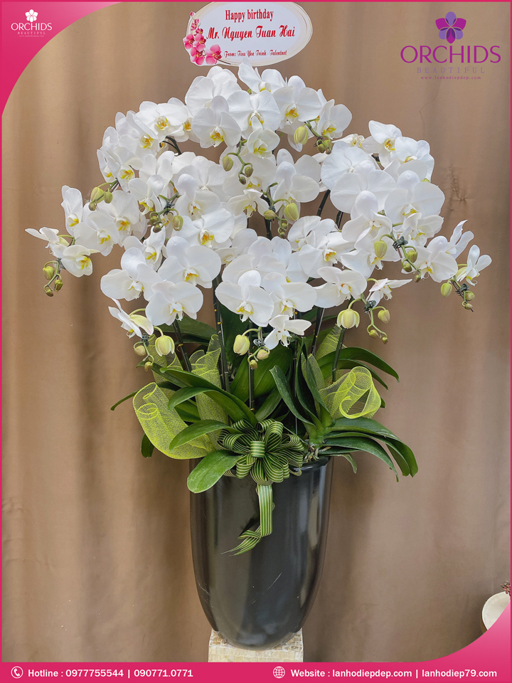 • Về cây hoa: Một chậu hoa lan hồ điệp đẹp và hoàn chỉnh sẽ được phối ghép từ nhiều cây hoa và tạo dáng hoàn toàn thủ công nên có thể sẽ khác nhau đôi chút giữa sản phẩm thực tế và trên hình. Cây hoa lan còn phụ thuộc theo mùa và điều kiện khách quan, tùy vào thời điểm hoa nở nhiều, nở ít khi shop có sẵn nên sẽ thay đổi về độ dầy hoa, thưa hoa và cách trang trí.