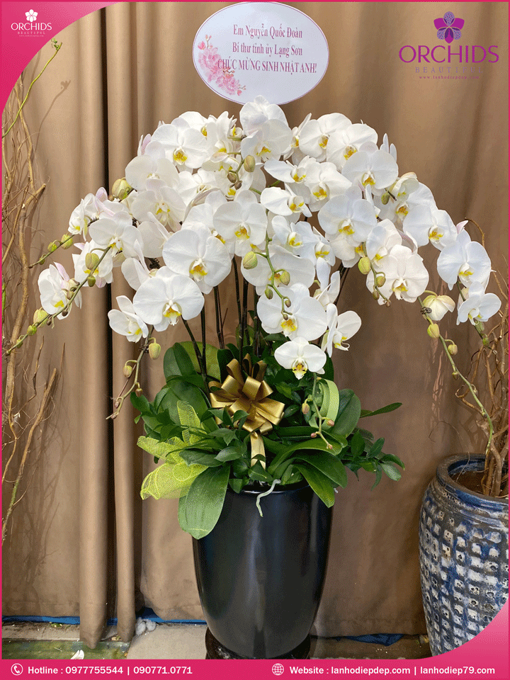 • Về cây hoa: Một chậu hoa lan hồ điệp đẹp và hoàn chỉnh sẽ được phối ghép từ nhiều cây hoa và tạo dáng hoàn toàn thủ công nên có thể sẽ khác nhau đôi chút giữa sản phẩm thực tế và trên hình. Cây hoa lan còn phụ thuộc theo mùa và điều kiện khách quan, tùy vào thời điểm hoa nở nhiều, nở ít khi shop có sẵn nên sẽ thay đổi về độ dầy hoa, thưa hoa và cách trang trí.