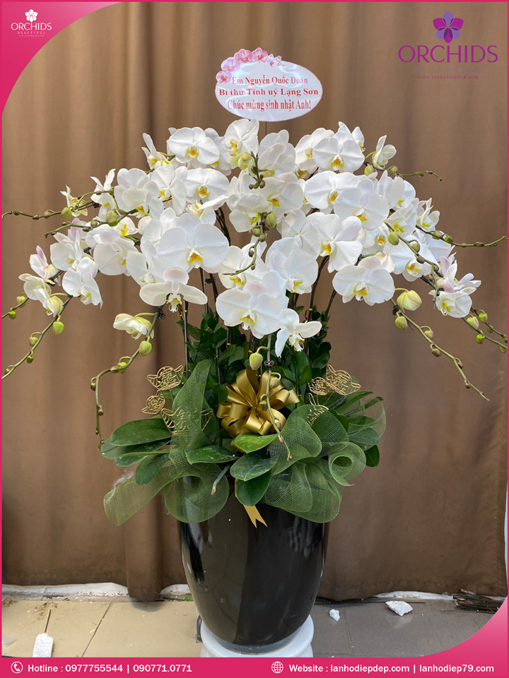 • Về cây hoa: Một chậu hoa lan hồ điệp đẹp và hoàn chỉnh sẽ được phối ghép từ nhiều cây hoa và tạo dáng hoàn toàn thủ công nên có thể sẽ khác nhau đôi chút giữa sản phẩm thực tế và trên hình. Cây hoa lan còn phụ thuộc theo mùa và điều kiện khách quan, tùy vào thời điểm hoa nở nhiều, nở ít khi shop có sẵn nên sẽ thay đổi về độ dầy hoa, thưa hoa và cách trang trí.