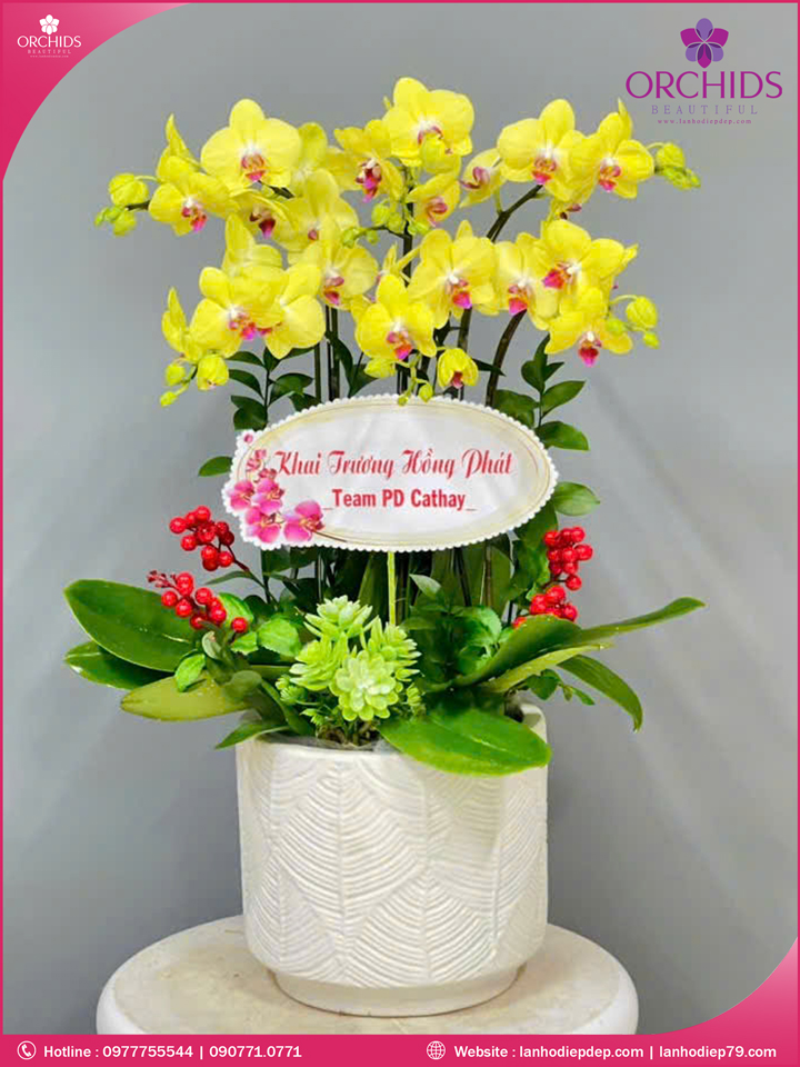 • Về cây hoa: Một chậu hoa lan hồ điệp đẹp và hoàn chỉnh sẽ được phối ghép từ nhiều cây hoa và tạo dáng hoàn toàn thủ công nên có thể sẽ khác nhau đôi chút giữa sản phẩm thực tế và trên hình. Cây hoa lan còn phụ thuộc theo mùa và điều kiện khách quan, tùy vào thời điểm hoa nở nhiều, nở ít khi shop có sẵn nên sẽ thay đổi về độ dầy hoa, thưa hoa và cách trang trí.