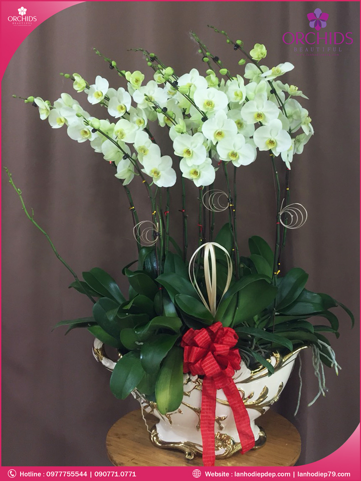 • Về cây hoa: Một chậu hoa lan hồ điệp đẹp và hoàn chỉnh sẽ được phối ghép từ nhiều cây hoa và tạo dáng hoàn toàn thủ công nên có thể sẽ khác nhau đôi chút giữa sản phẩm thực tế và trên hình. Cây hoa lan còn phụ thuộc theo mùa và điều kiện khách quan, tùy vào thời điểm hoa nở nhiều, nở ít khi shop có sẵn nên sẽ thay đổi về độ dầy hoa, thưa hoa và cách trang trí.