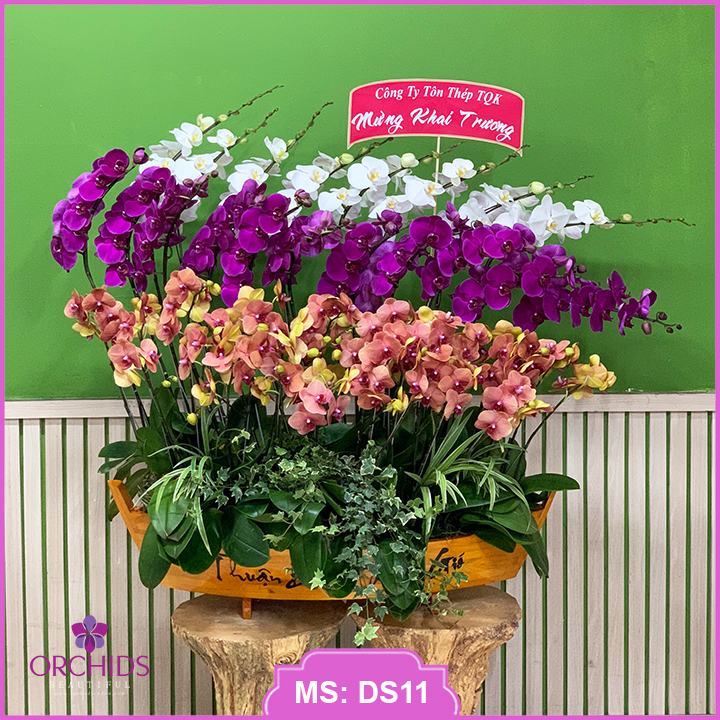 (Thuyền hoa lan hồ điệp đa sắc gồm 36 cành, món quà tặng mang ý nghĩa của sự thuận buồm xuôi gió trong công việc cũng như trong cuộc sống)